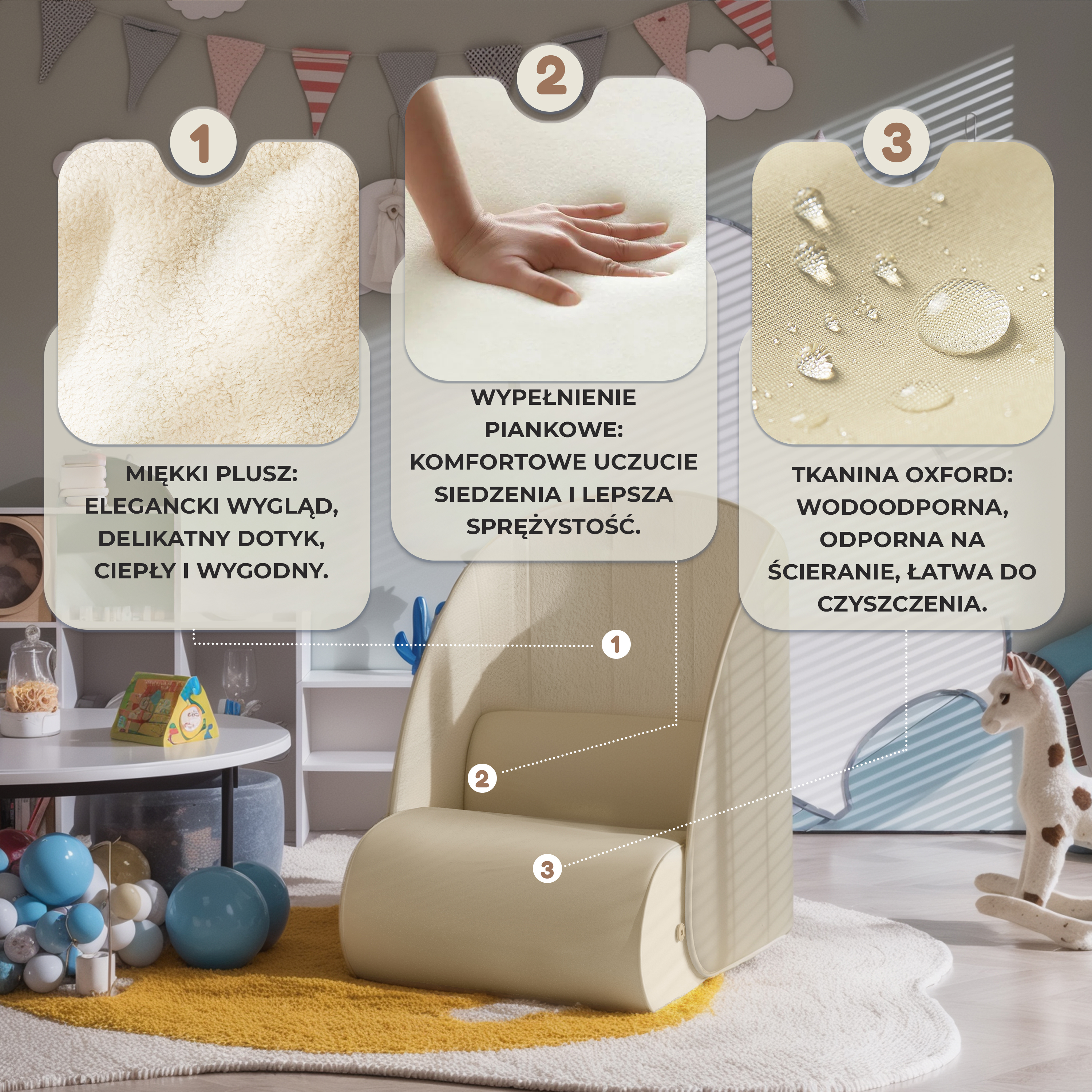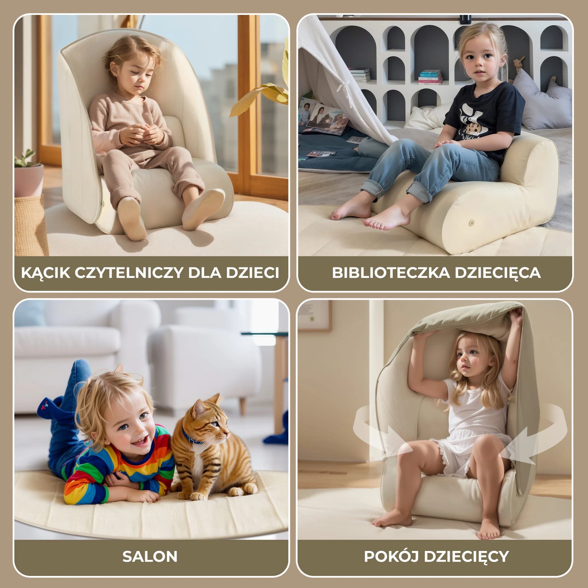 Stwórz idealną i przytulną przestrzeń dla swojego dziecka! Nasz Bezpieczny Fotel Podłogowy to wszechstronne i komfortowe rozwiązanie, zaprojektowane z myślą o bezpieczeństwie i wygodzie najmłodszych. Jest to doskonały mebel, który rośnie razem z dzieckiem, idealny do kącika czytelniczego, biblioteczki dziecięcej, a także do salonu czy pokoju dziecięcego.