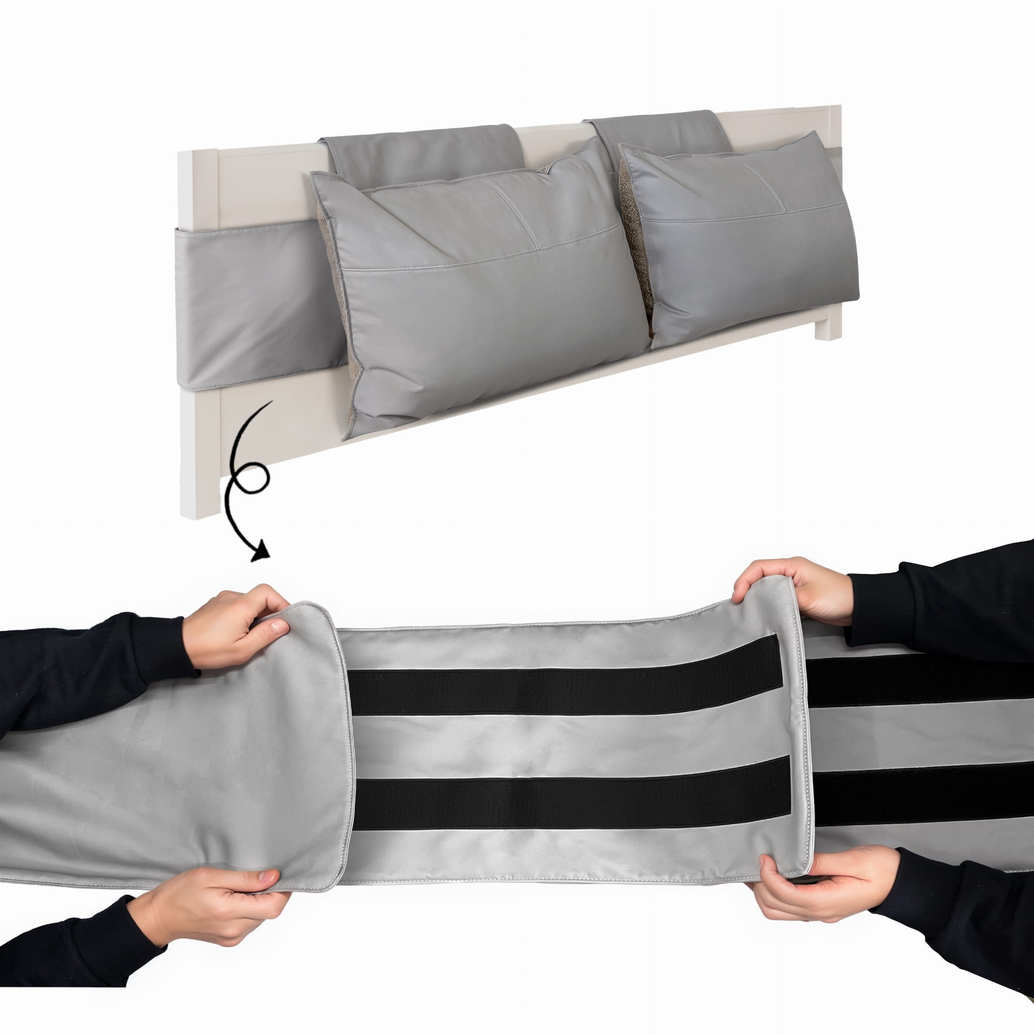 Regulowane Dopasowanie: Dzięki regulowanemu paskowi zapinanemu na mocny rzep, poduszka pasuje do szerokiej gamy łóżek. Wystarczy przełożyć paski łączące przez zagłówek i owinąć regulowany pasek wokół niego, mocując go z przodu za pomocą rzepu.