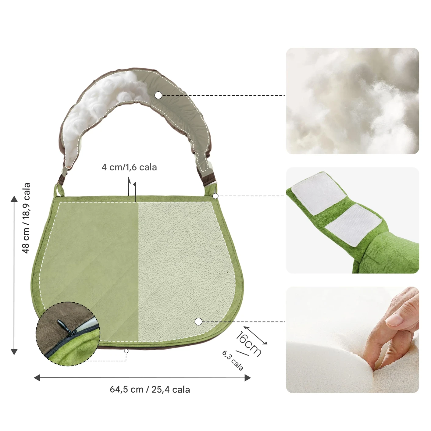 O: Antypoślizgowa welurowa podstawa doskonale przylega do powierzchni – koniec z niewygodnym poprawianiem poduszki w trakcie oglądania filmu!