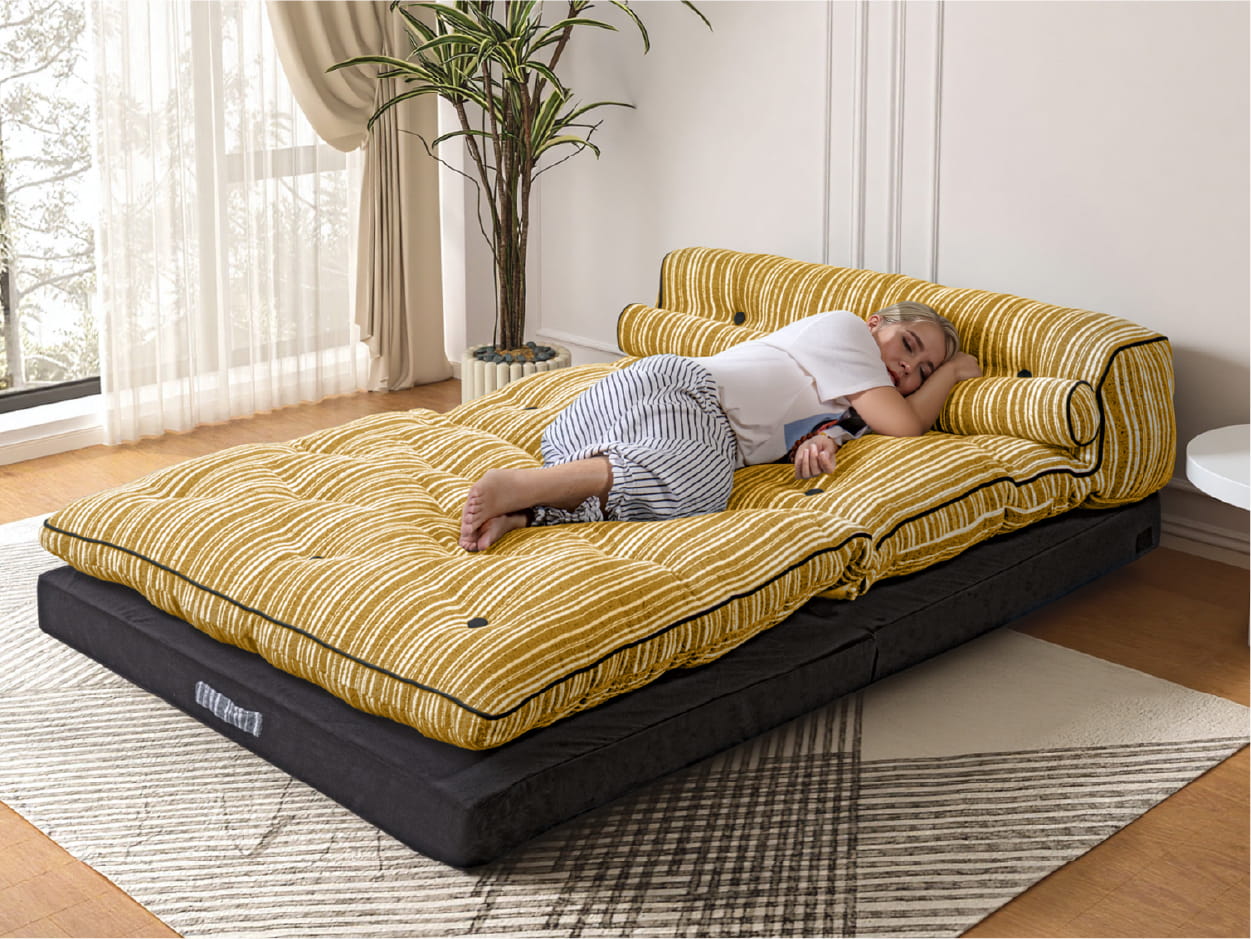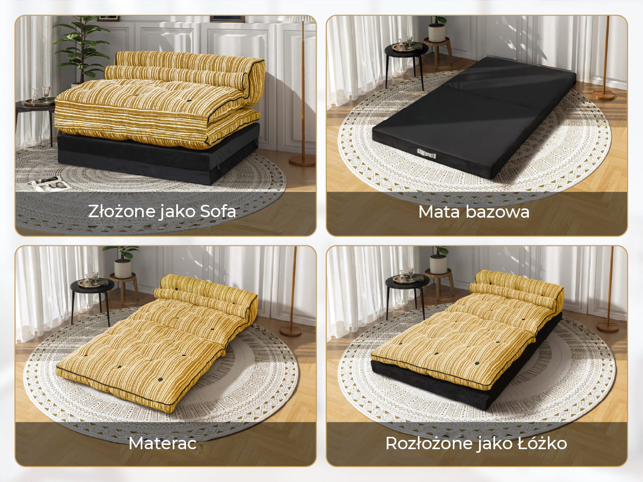 Nasza Kanapa Funkcyjna została zaprojektowana, aby maksymalnie wykorzystać przestrzeń. W ciągu dnia może służyć jako złożona sofa do czytania, oglądania filmów czy spotkań ze znajomymi. Wieczorem, w prosty sposób rozkłada się, stając się wygodnym łóżkiem lub materacem, zapewniającym komfortowy sen. Jest to doskonały wybór do kawalerek, pokojów młodzieżowych lub jako dodatkowe miejsce do spania dla gości.