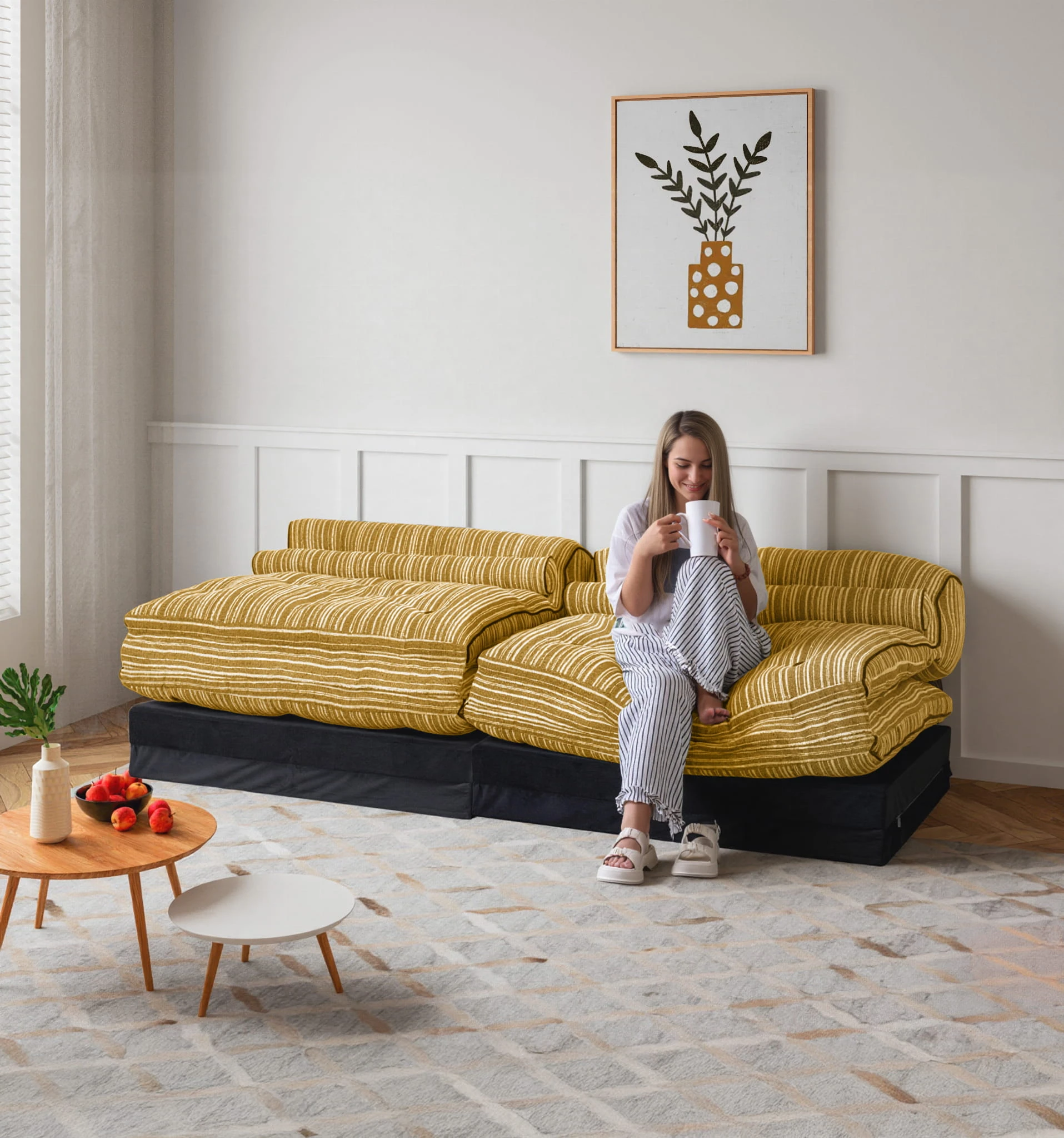 Odkryj Kanapę Funkcyjną Wypoczynkową, idealne rozwiązanie do każdego nowoczesnego wnętrza, łączące stylowy design z niezrównaną funkcjonalnością. Ten mebel to więcej niż sofa – to elastyczny moduł, który z łatwością dopasujesz do swoich aktualnych potrzeb, od miejsca do siedzenia, przez leżankę, aż po wygodne łóżko.
