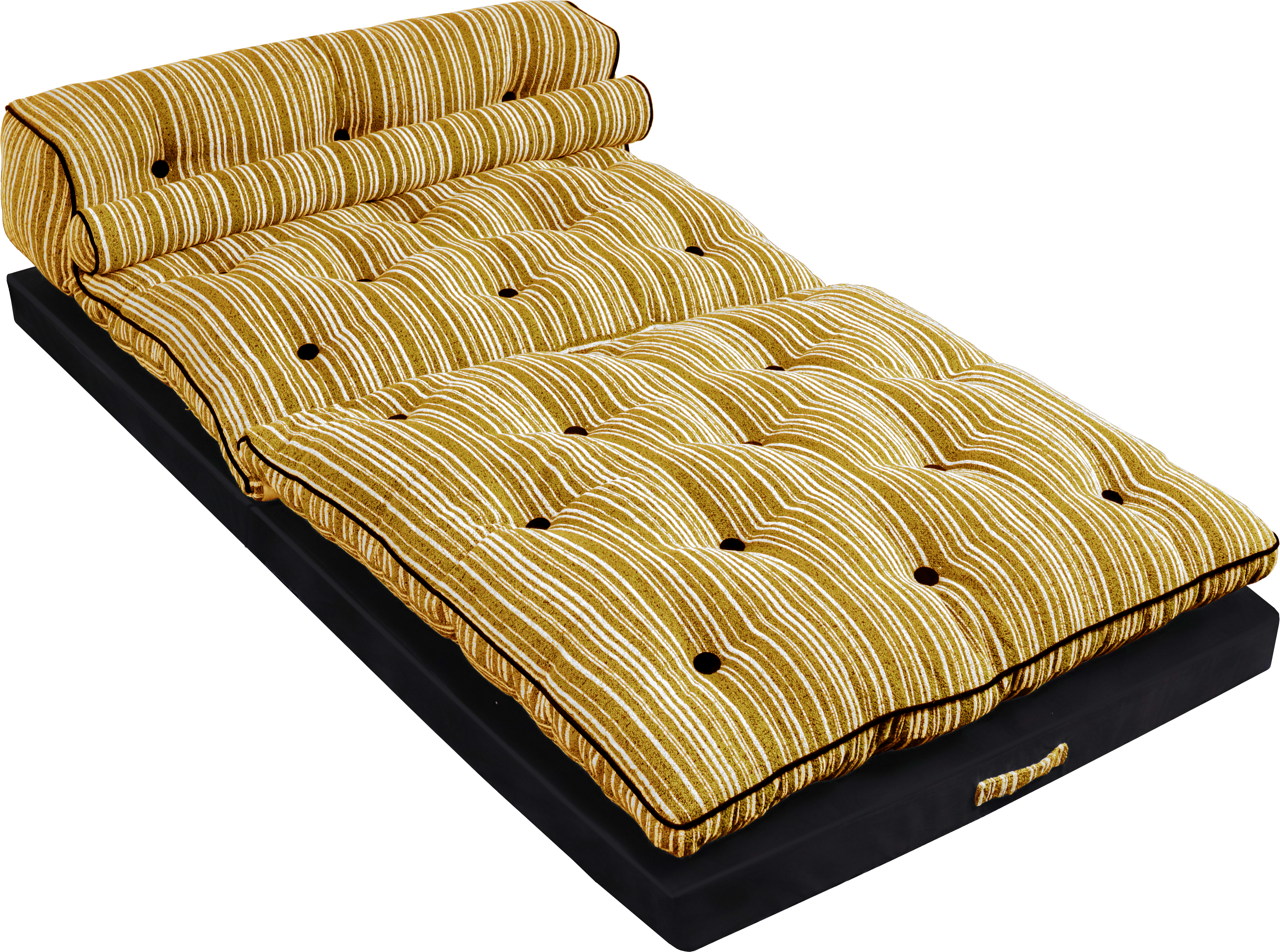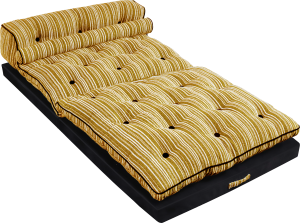 Tkanina poliestrowa szenilowa typu Bouclé – górna część materaca jest pokryta modnym materiałem, który jest przyjemny w dotyku i wyróżnia się oryginalnym, pasiatym wzorem w odcieniu intensywnej żółci.