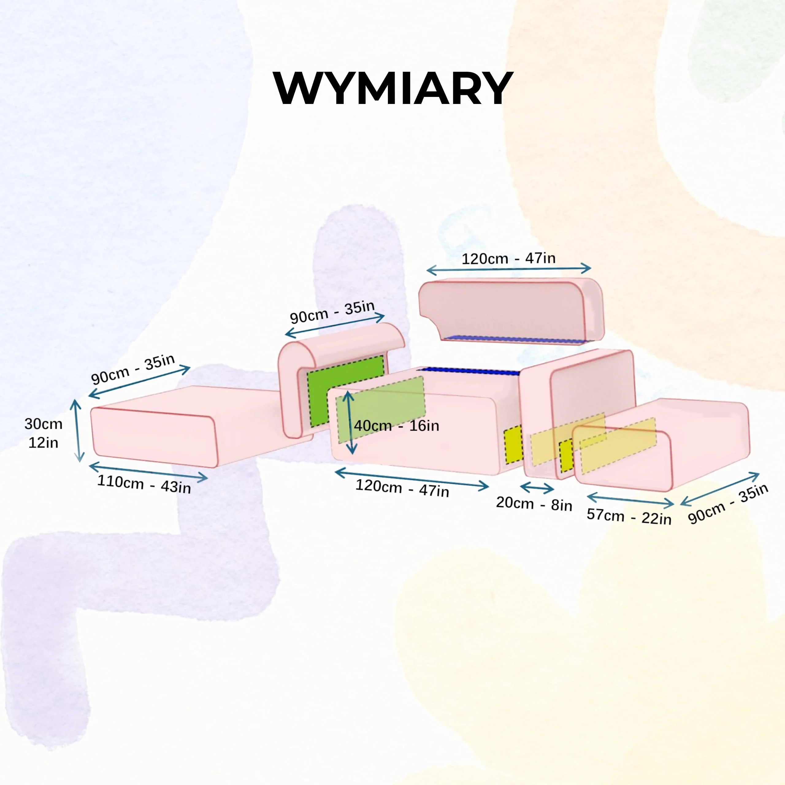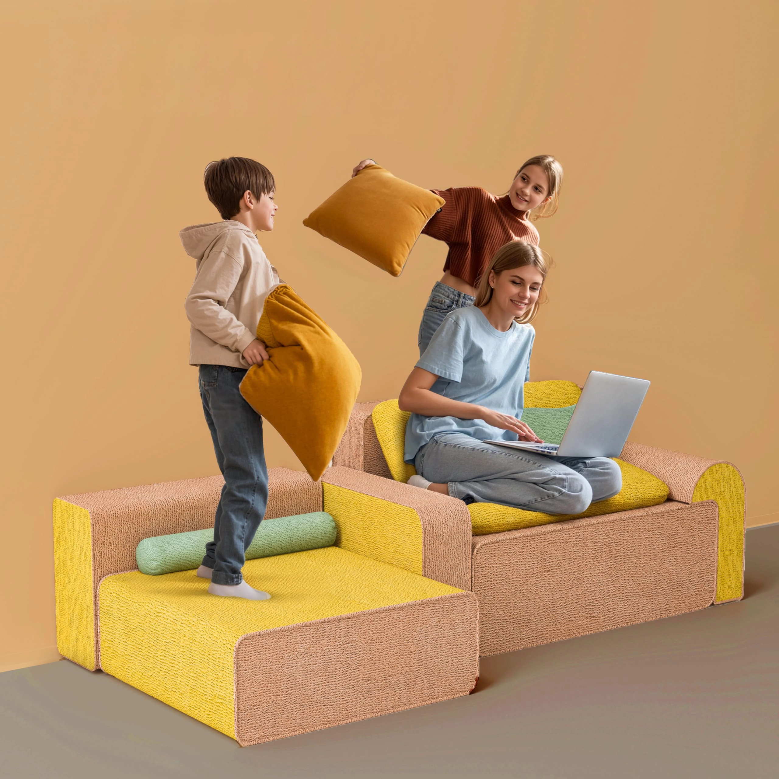 Przyjazna dla Dzieci i Trwała Poduszki z pianki o wysokiej gęstości wytrzymują skakanie, rozlania i intensywną zabawę, zachowując jednocześnie swoje właściwości podtrzymujące. Łatwe w czyszczeniu aksamitne pokrowce na poduszki zwiększają praktyczność