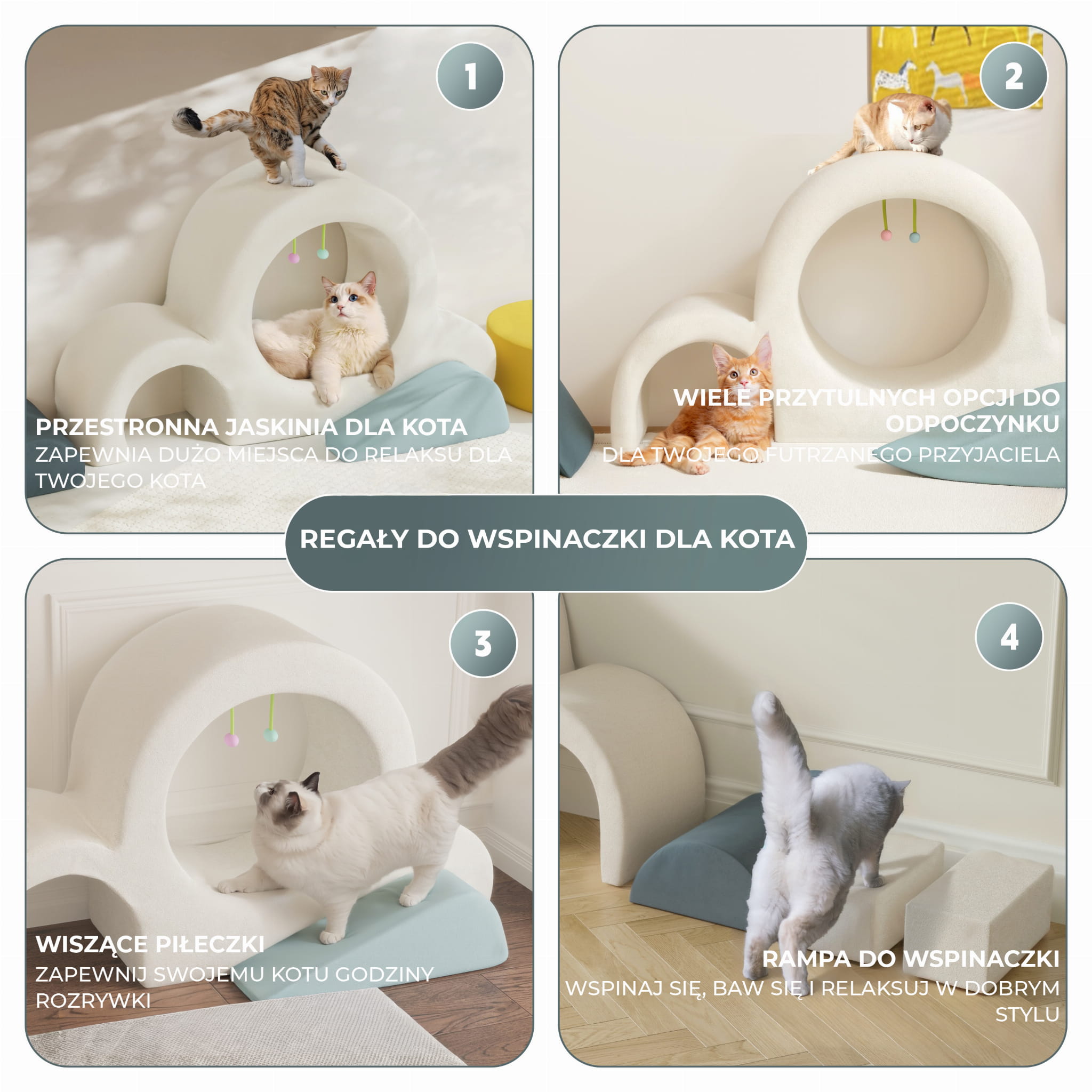 ZDEJMOWANY POMPON/WISZĄCE PIŁECZKI: Moduł zawiera wesołe, wiszące zabawki, które zapewnią Twojemu kotu godziny rozrywki. Pompon możesz zdjąć, aby bawić się nim z kotem, gdziekolwiek chcesz.