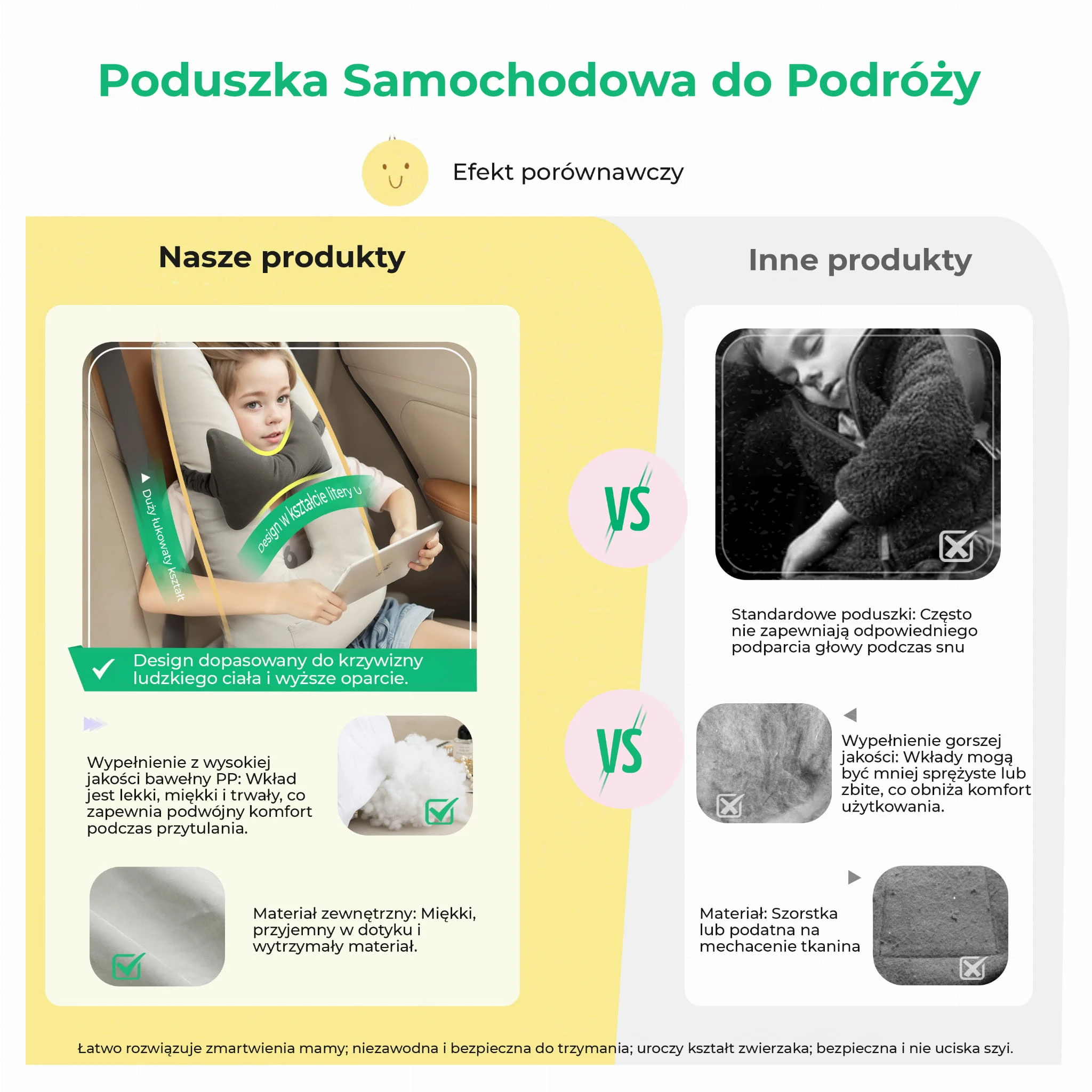 Podróżowanie z dzieckiem (lub samemu!) nigdy nie było tak wygodne. Komfortowa poduszka podróżna to innowacyjne rozwiązanie, które eliminuje problem opadającej głowy i sztywnego karku podczas snu w samochodzie, pociągu czy samolocie. Dzięki unikalnemu kształtowi litery „U” i regulowanej konstrukcji, zapewnia ona stabilizację i najwyższy poziom relaksu.