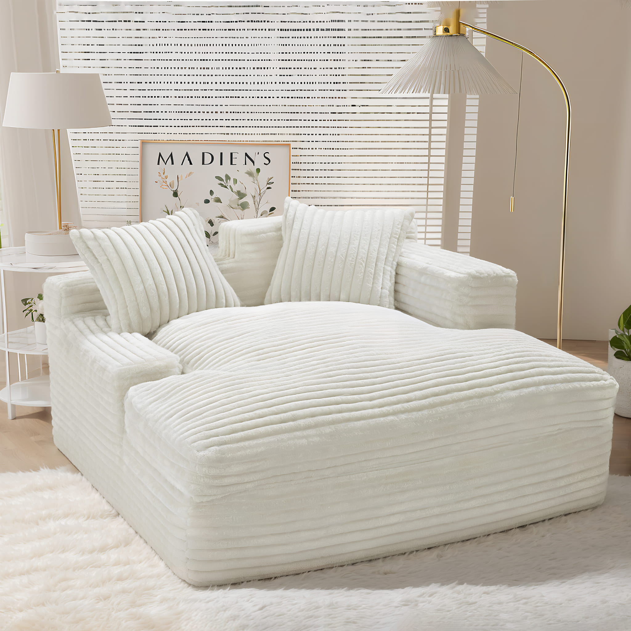 Niespotykana Miękkość: Obicie wykonane z puszystego, prążkowanego materiału jest niezwykle przyjemne w dotyku. W połączeniu z wypełnieniem z bawełny PP, sofa daje uczucie „zapadania się” w lekką chmurę.
