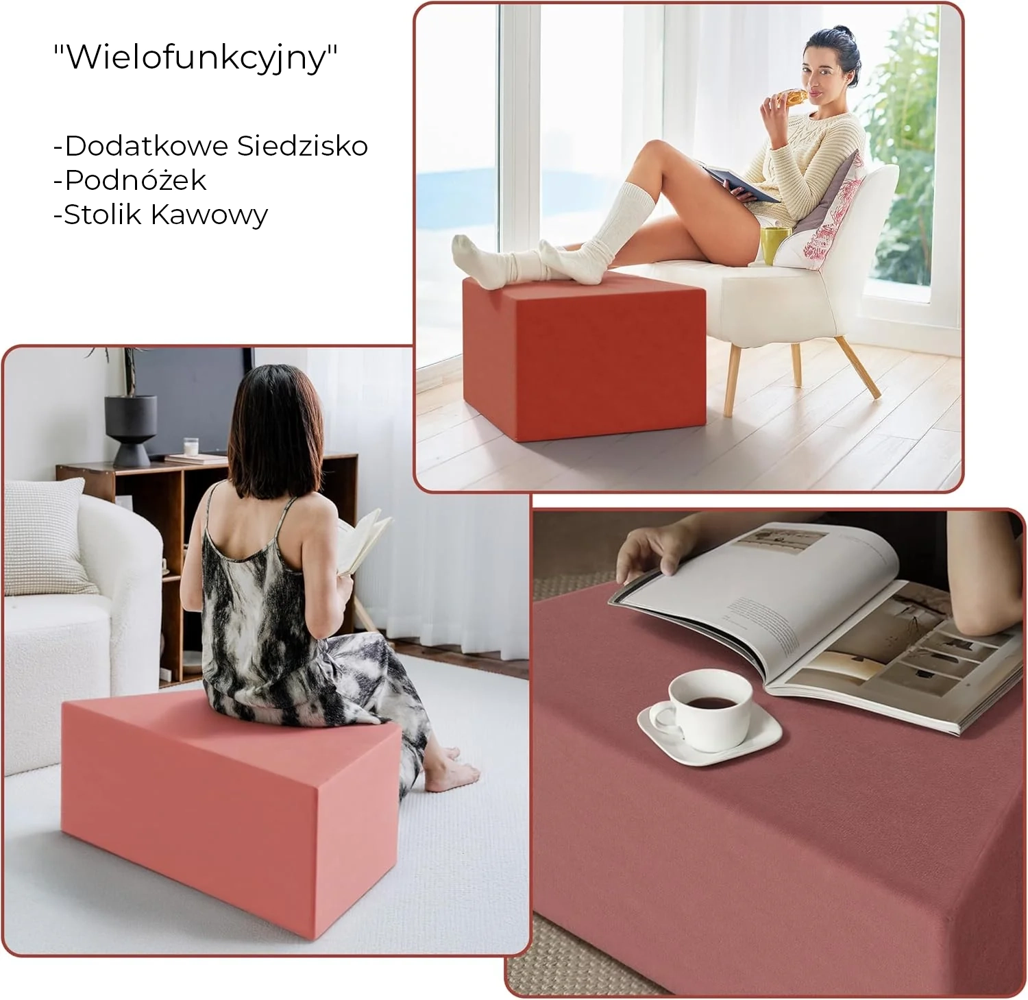 Przyjazne dla skóry aksamitne pokrowce i pianka o wysokiej sprężystości zapewniają miękkość oraz wsparcie dla stóp lub jako siedzisko.