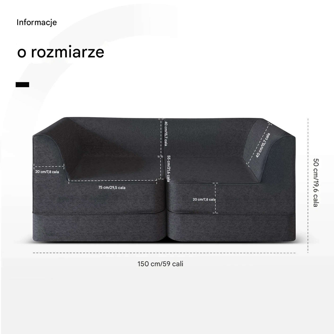 Idealna do mieszkań, akademików i małych przestrzeni. Z łatwością zmienia się w siedzenie podłogowe lub dowolnie się przestawia, dostosowując się do Twoich ewoluujących potrzeb. Całość jest owinięta plamoodporną tkaniną poliestrową, co ułatwia konserwację.