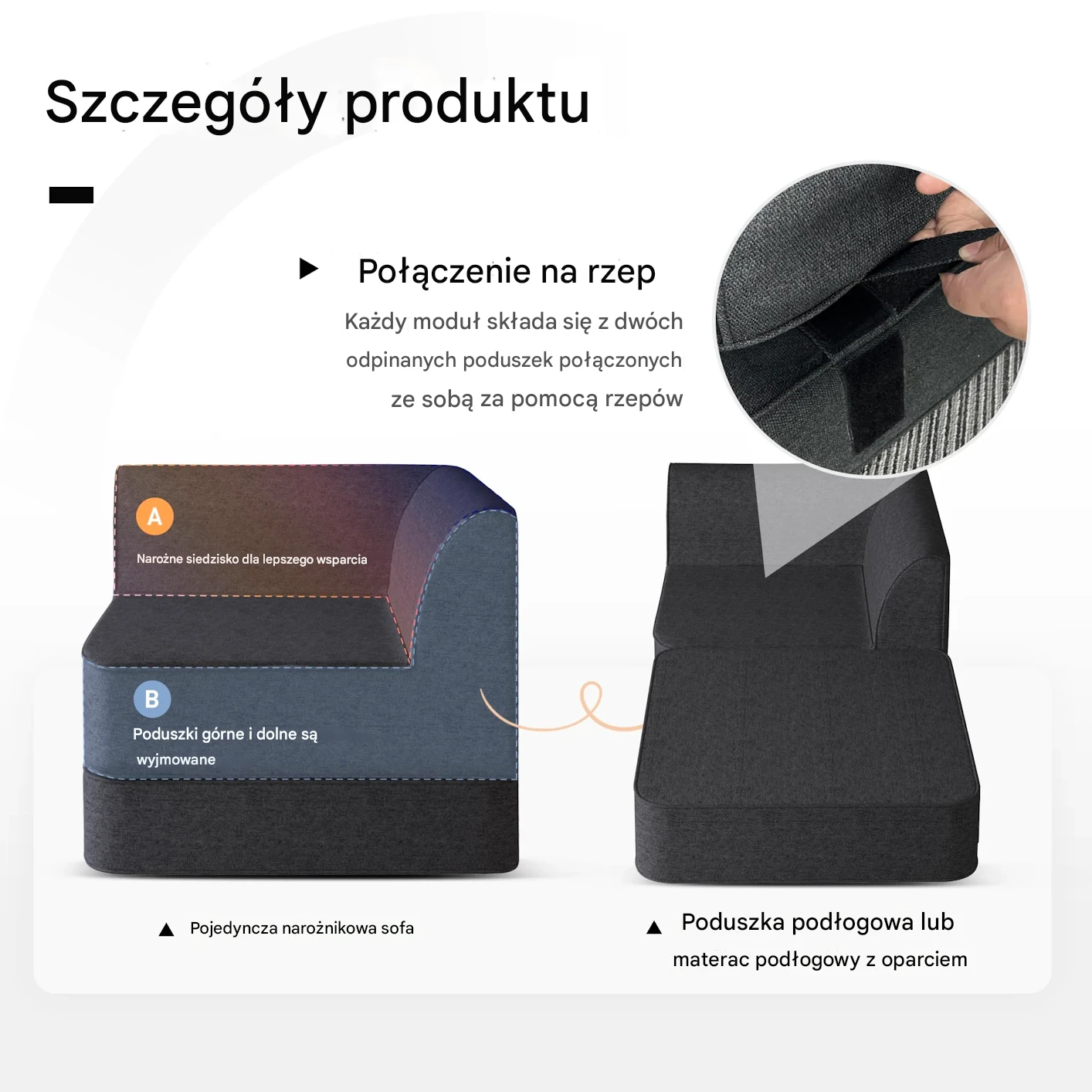 Wielofunkcyjny Design: Używaj modułów jako mat podłogowych, łóżek dla gości lub kompaktowych siedzisk. Idealne na wieczory filmowe lub do małych przestrzeni.