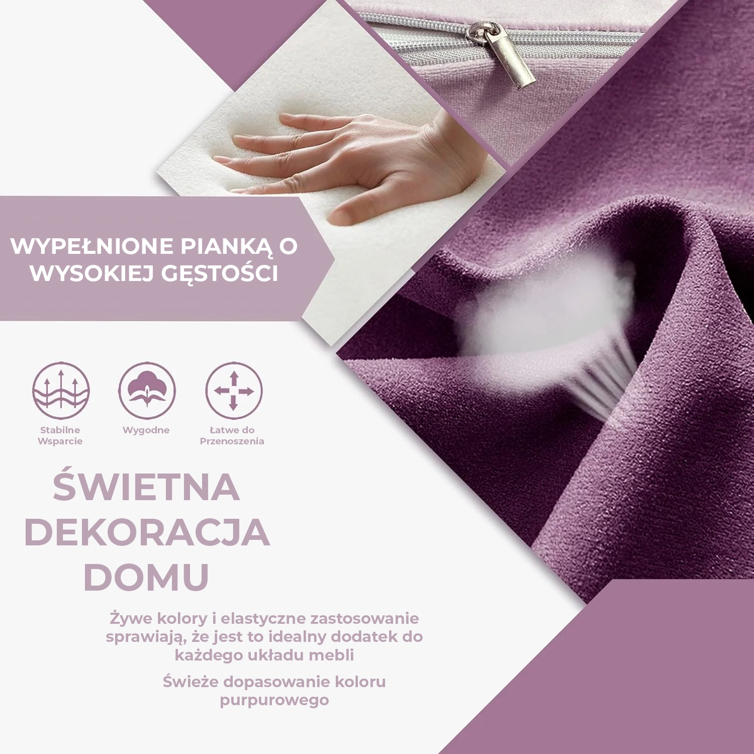 Łatwe Czyszczenie: Gładkie zamki błyskawiczne pozwalają na szybkie zdjęcie pokrowców, które są w pełni przystosowane do prania w pralce. Oznacza to, że utrzymanie lawendowej barwy w idealnej czystości jest dziecinnie proste.