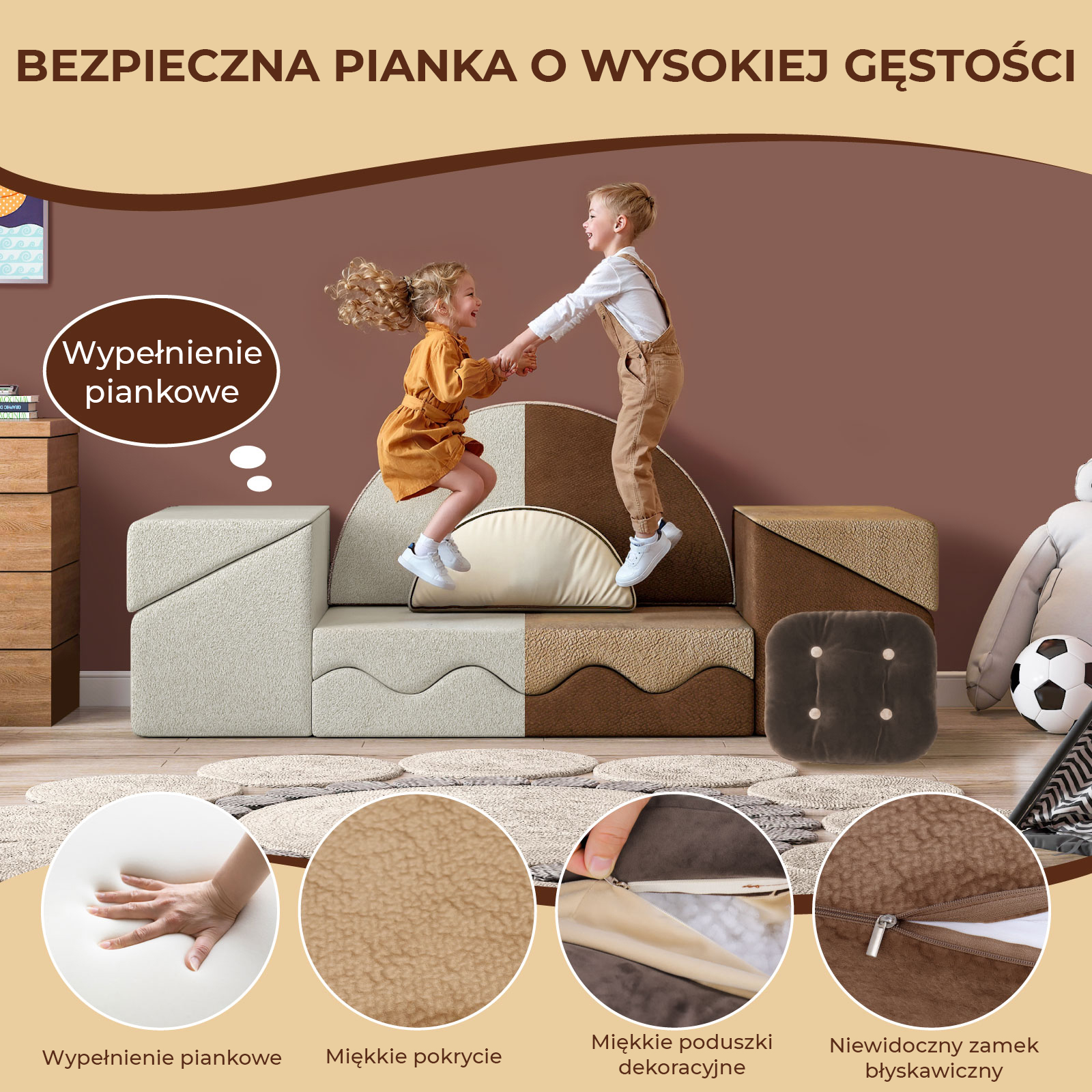 Bezpieczeństwo Państwa dziecka jest naszym priorytetem. Nasz zestaw wykonany jest z bezpiecznej pianki o wysokiej gęstości, która zapewnia stabilność i amortyzację podczas skakania i wspinaczki.