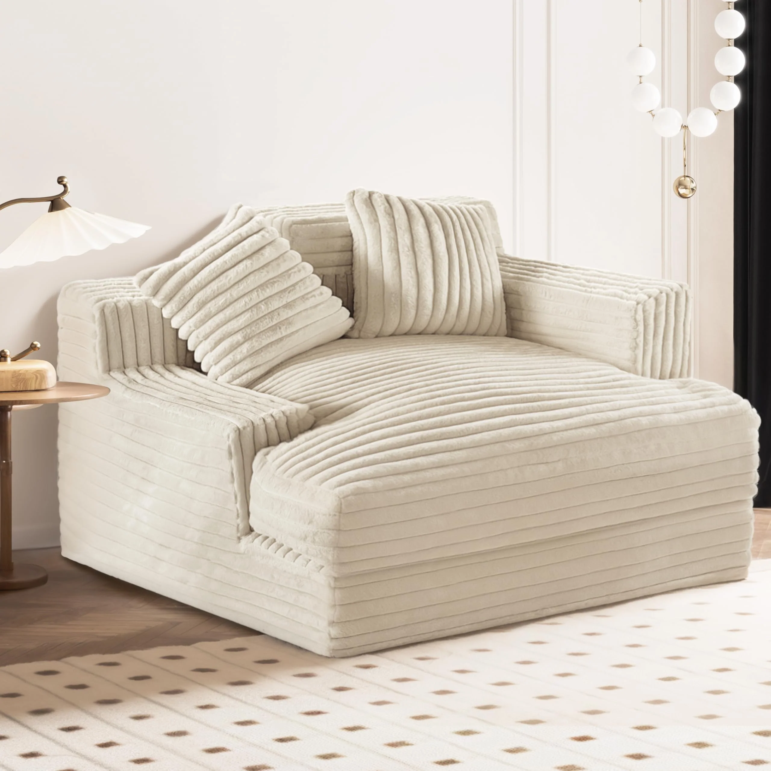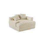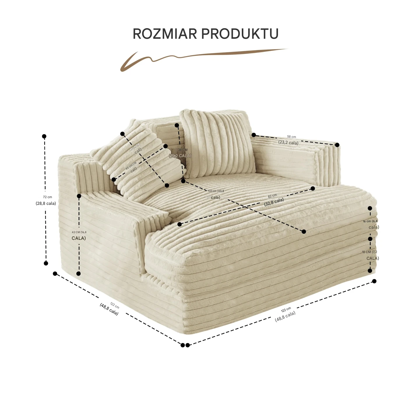 Zaprojektowany z myślą o najwyższym relaksie, ten szezlong łączy ultra-miękki plusz w szerokie pasy, ergonomiczne wsparcie oraz wszechstronną funkcjonalność. Idealny zarówno do małych przestrzeni, jak i rozległych salonów, bez wysiłku przechodzi ze stylowej sofy w przytulną leżankę.