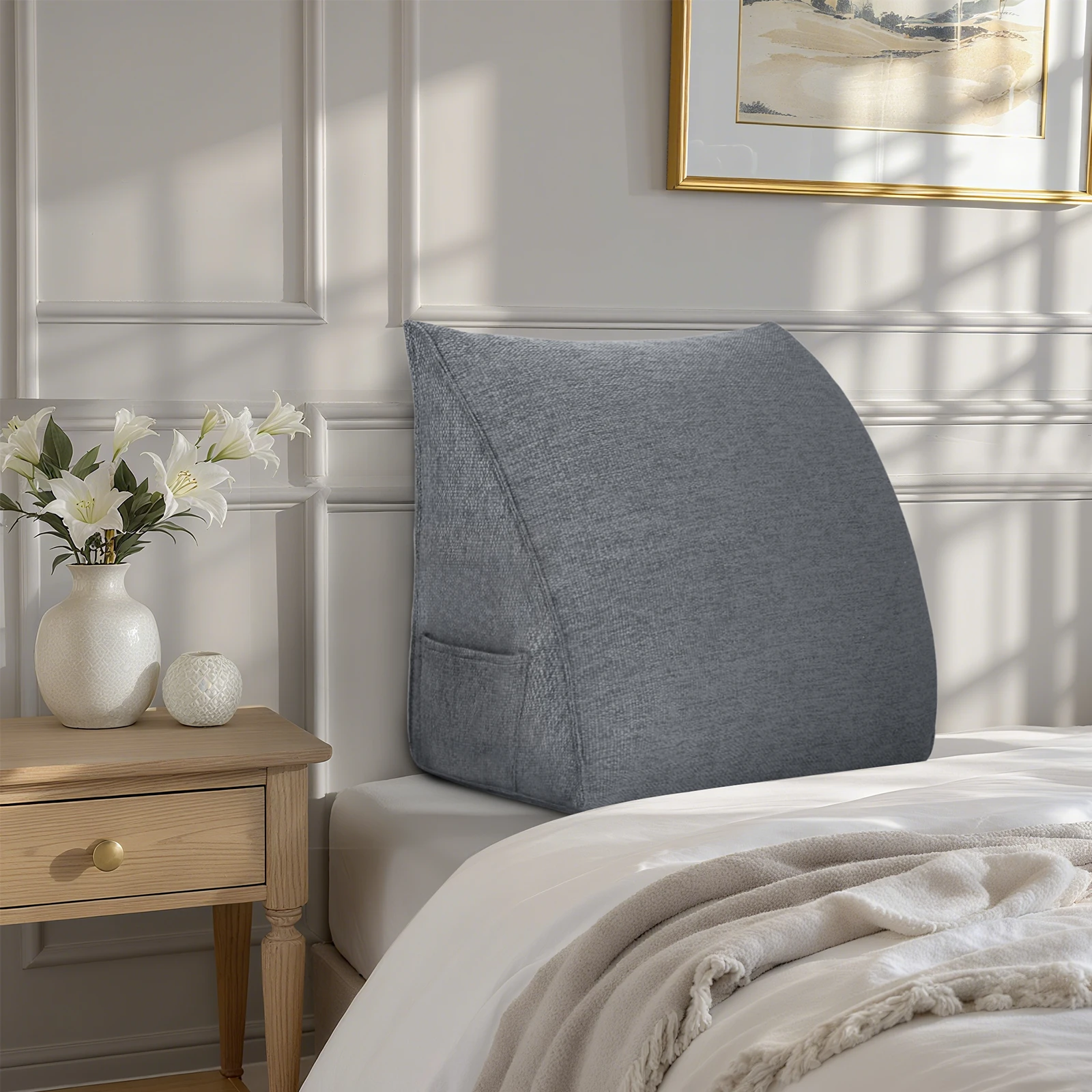 Klasyczne oparcie na łóżku lub sofie podczas czytania.