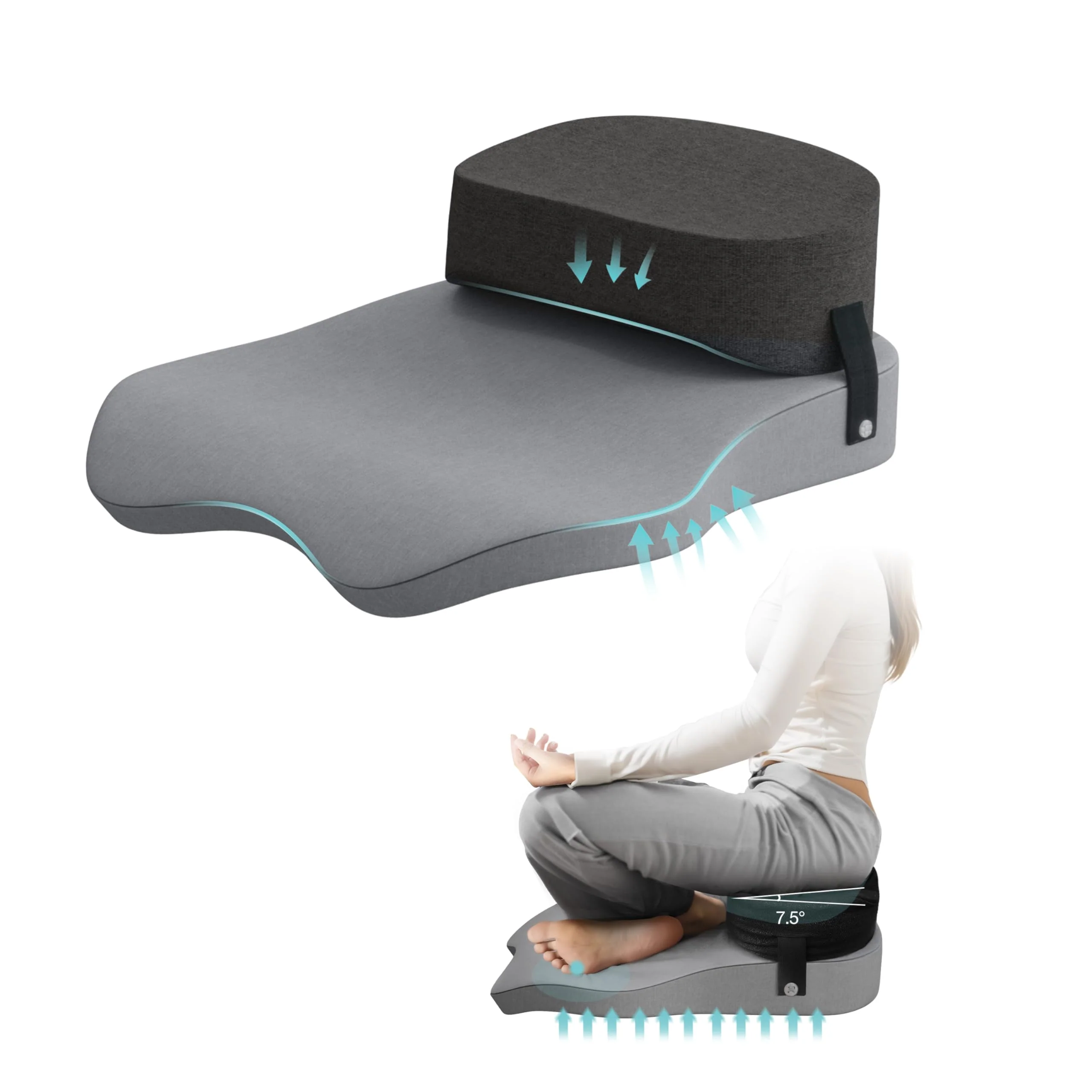 Wyjątkowo gruba górna poduszka (14 cm) wraz z dolną poduszką (7,6 cm) zapewniają komfortowe wsparcie dla bioder, lędźwi i kolan podczas zmiany pozycji. Poduszki te są idealne do użytku wewnątrz i na zewnątrz, zapewniając wygodne siedzenie do medytacji lub relaksu, gdziekolwiek się udasz.