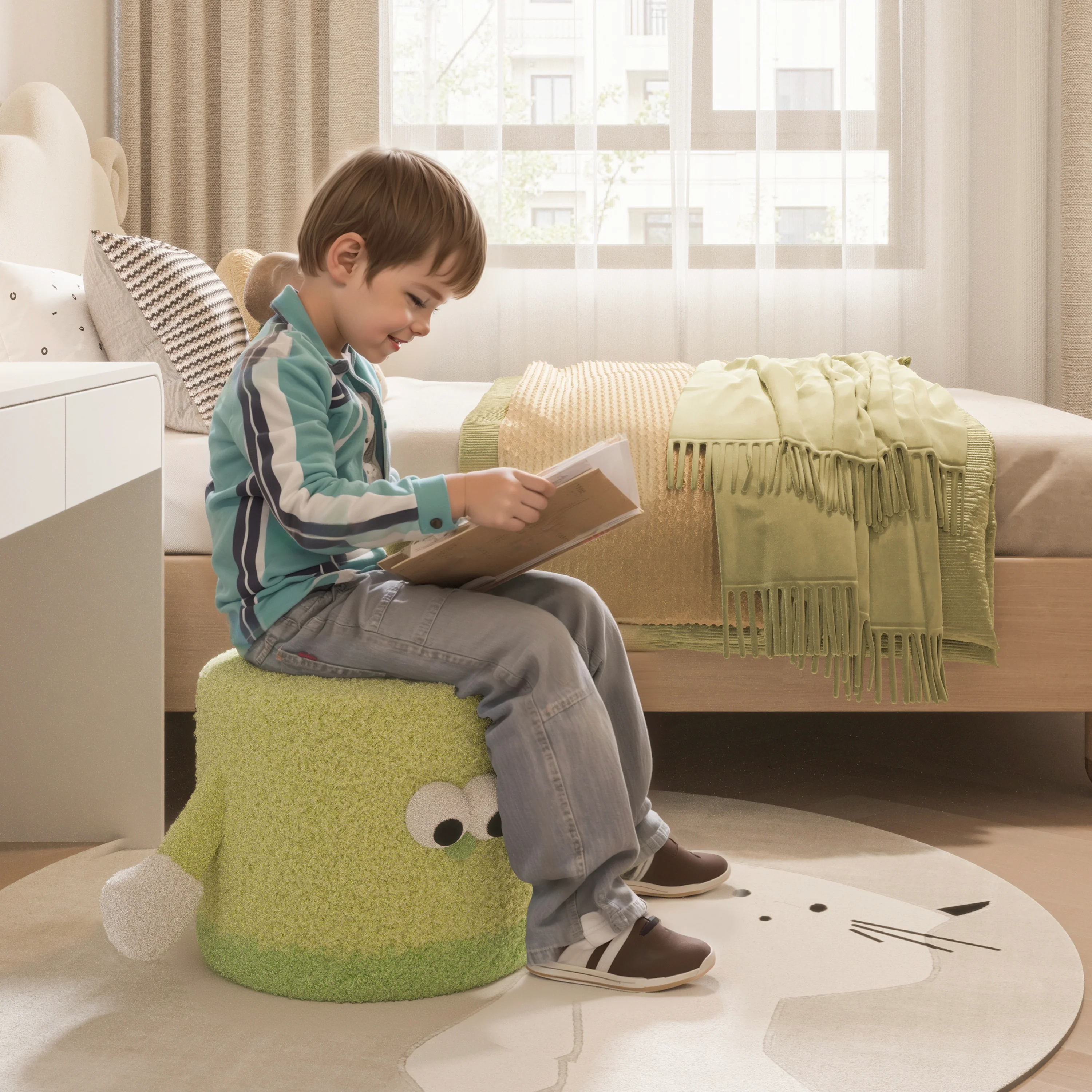 Dziecięcy Podnóżek łączy w sobie zabawny design z funkcjonalnością przyjazną dzieciom. Jego wyjątkowa, magnetyczna funkcja łączenia rączek zachęca do współpracy i pojednania, podczas gdy ultra-miękki aksamitny materiał i piankowe wypełnienie zapewniają bezpieczeństwo oraz komfort. Idealna jako siedzisko, element dekoracyjny lub kreatywny dodatek do przestrzeni zabaw – ta pufa rośnie wraz z wyobraźnią Twojego dziecka.