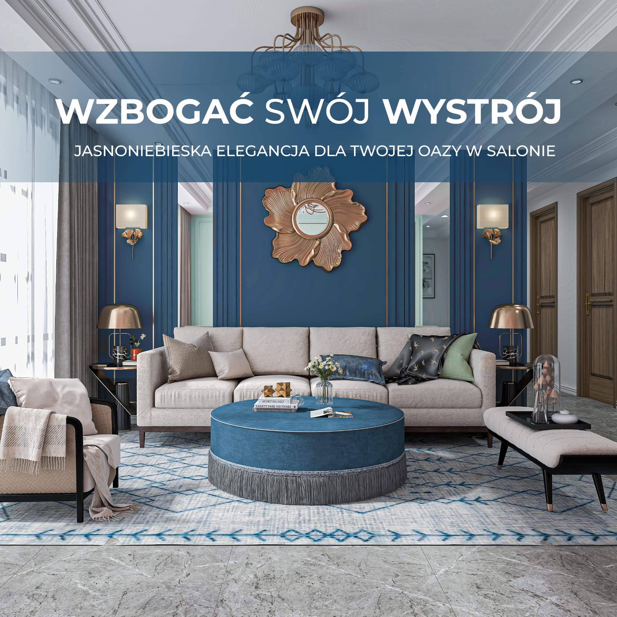 Tapicerka: Utrzymana w niebiesko-złotej kolorystyce z bogatym, aksamitnym wzorem w stylu europejskim.