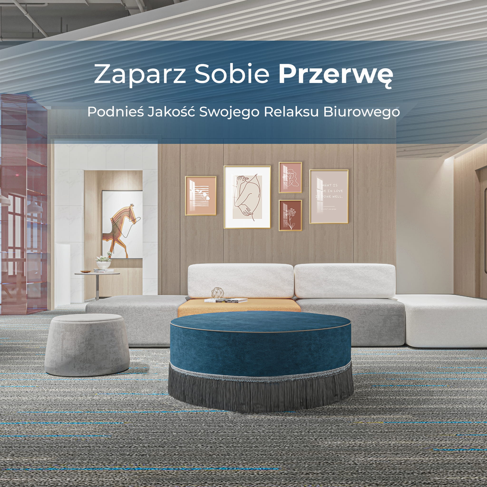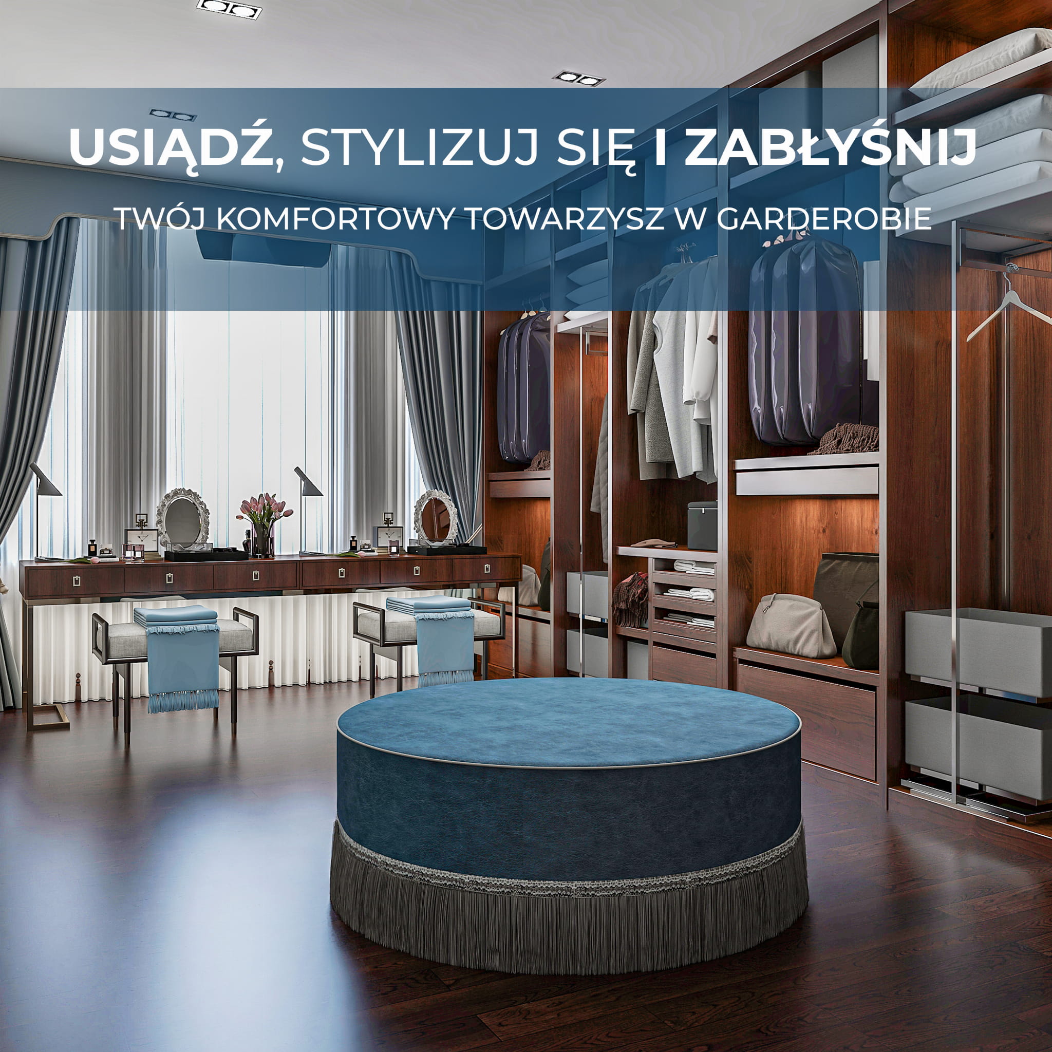 Pufa/Stołek typu otomana w czytelni, sypialni czy garderobie, pełniąc funkcję wygodnego siedziska lub taboretu.