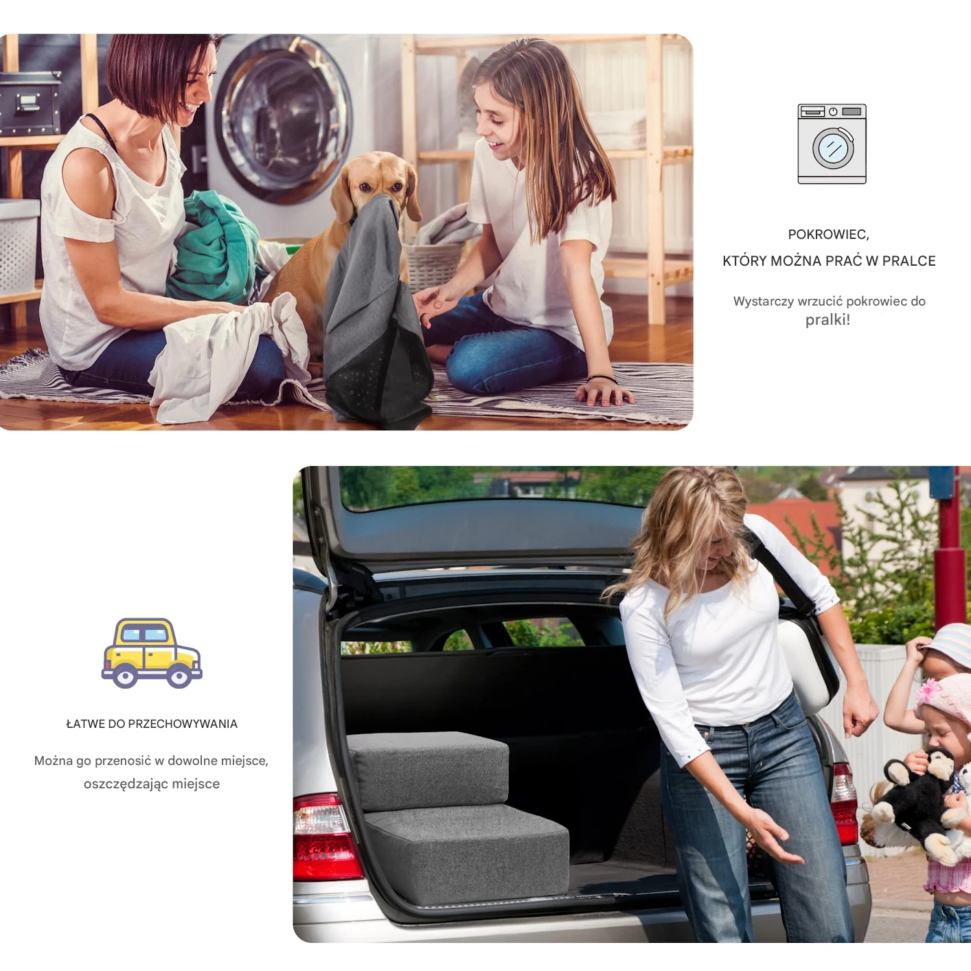 Używaj ich jako schodów do łóżek/kanap lub złóż je w przenośne legowisko — idealne na drzemki lub przejażdżki samochodem.