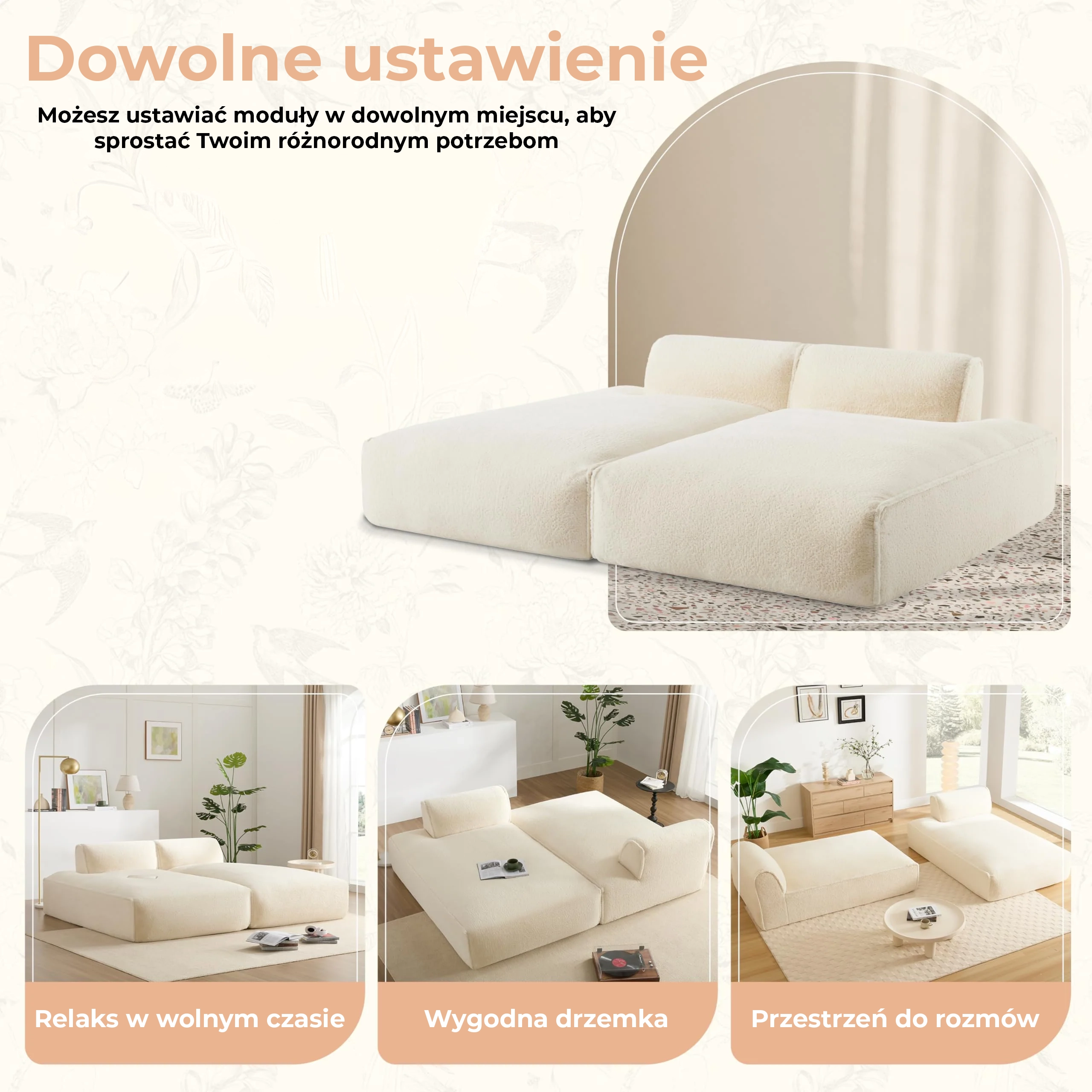 Modułowa, 2-częściowa konstrukcja dopasowuje się do Twojego stylu życia: skonfiguruj ją w układ narożny w kształcie litery L na wieczory filmowe, rozdziel na niezależne siedziska dla gości lub ułóż jako przestronne szezlong/leżankę na popołudniowe drzemki. Dzięki minimalistycznym, inspirowanym stylem skandynawskim liniom i pluszowej tapicerce premium, ta sofa uświetni każde nowoczesne wnętrze, rozwiązując jednocześnie realne problemy życia w mieście.