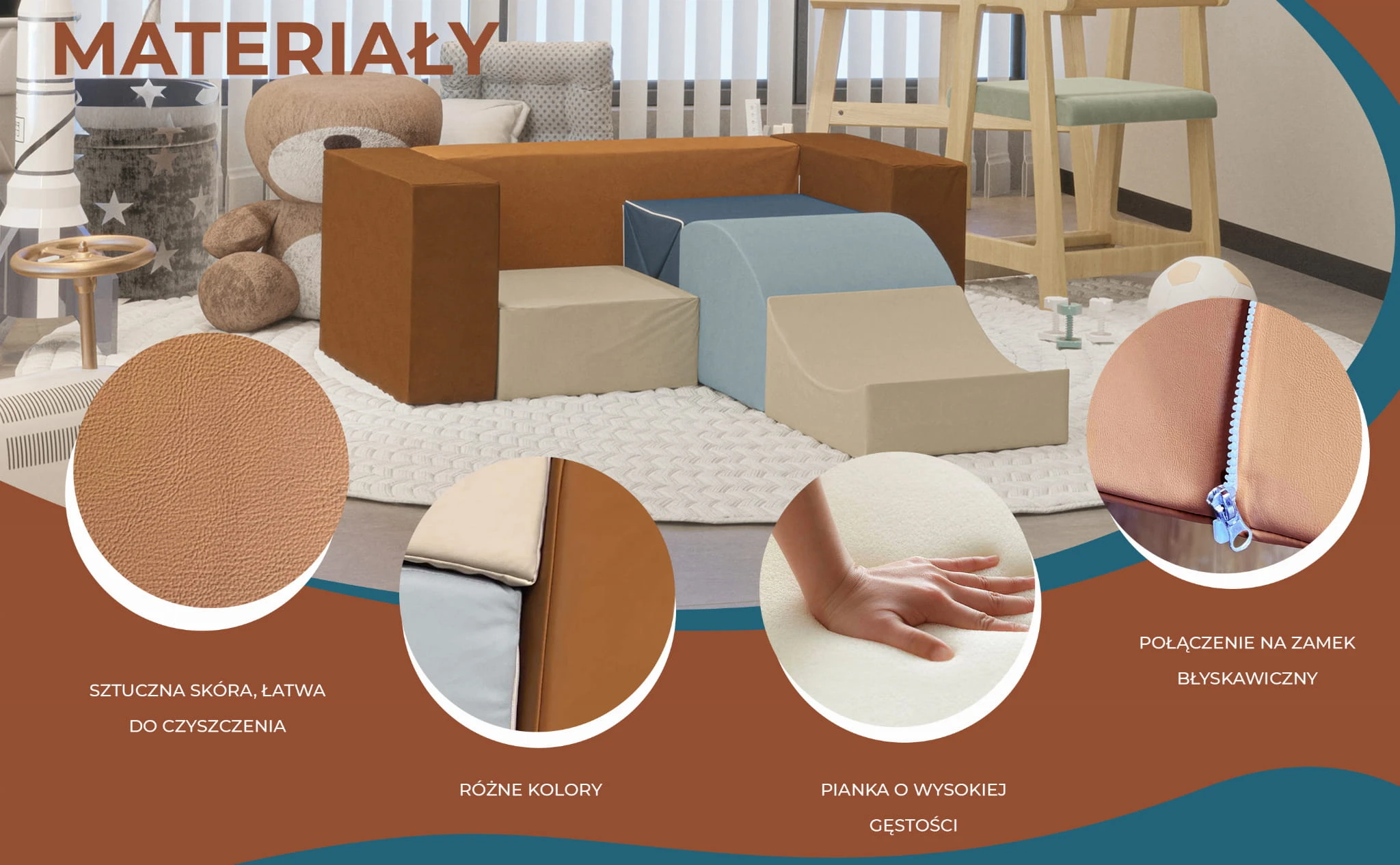 Odkryj Sofa z piankowych bloków dla dziecka, która jest idealnym połączeniem mebla do odpoczynku i nieograniczonego placu zabaw! Nasza modułowa kanapa została zaprojektowana, aby wspierać kreatywność, rozwój motoryczny i samodzielną zabawę Twojego malucha. To nie tylko sofa, ale wielofunkcyjny zestaw klocków, z których można budować twierdze, domki, zjeżdżalnie i wiele więcej!