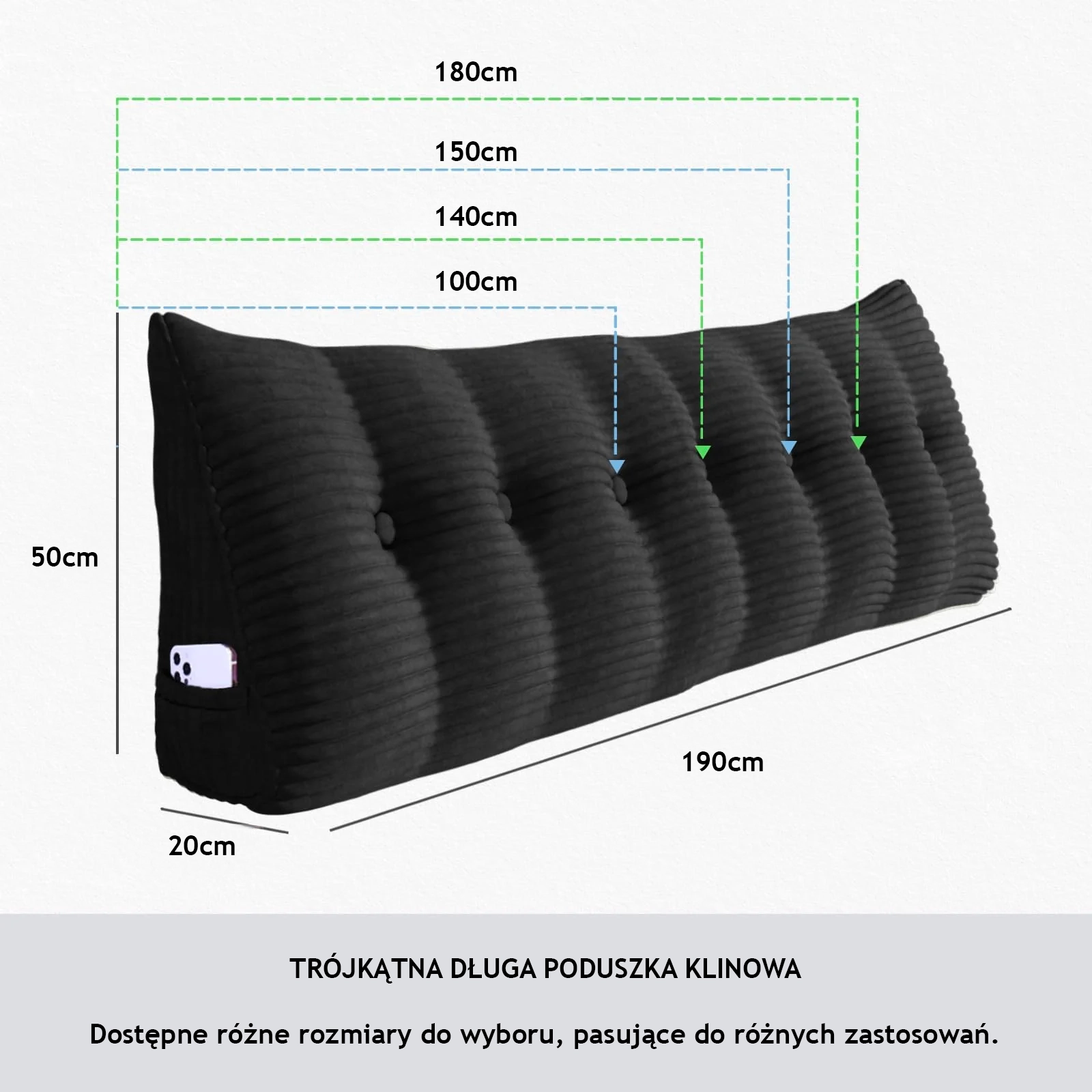 Poduszka oparciowa jest wypełniona pianką poliuretanową o wysokiej gęstości, zapewniającą doskonałe wsparcie pleców. Tkanina poduszki klinowej ma świetny efekt wizualny, idealnie dopasowując się do wystroju Twojego wnętrza.