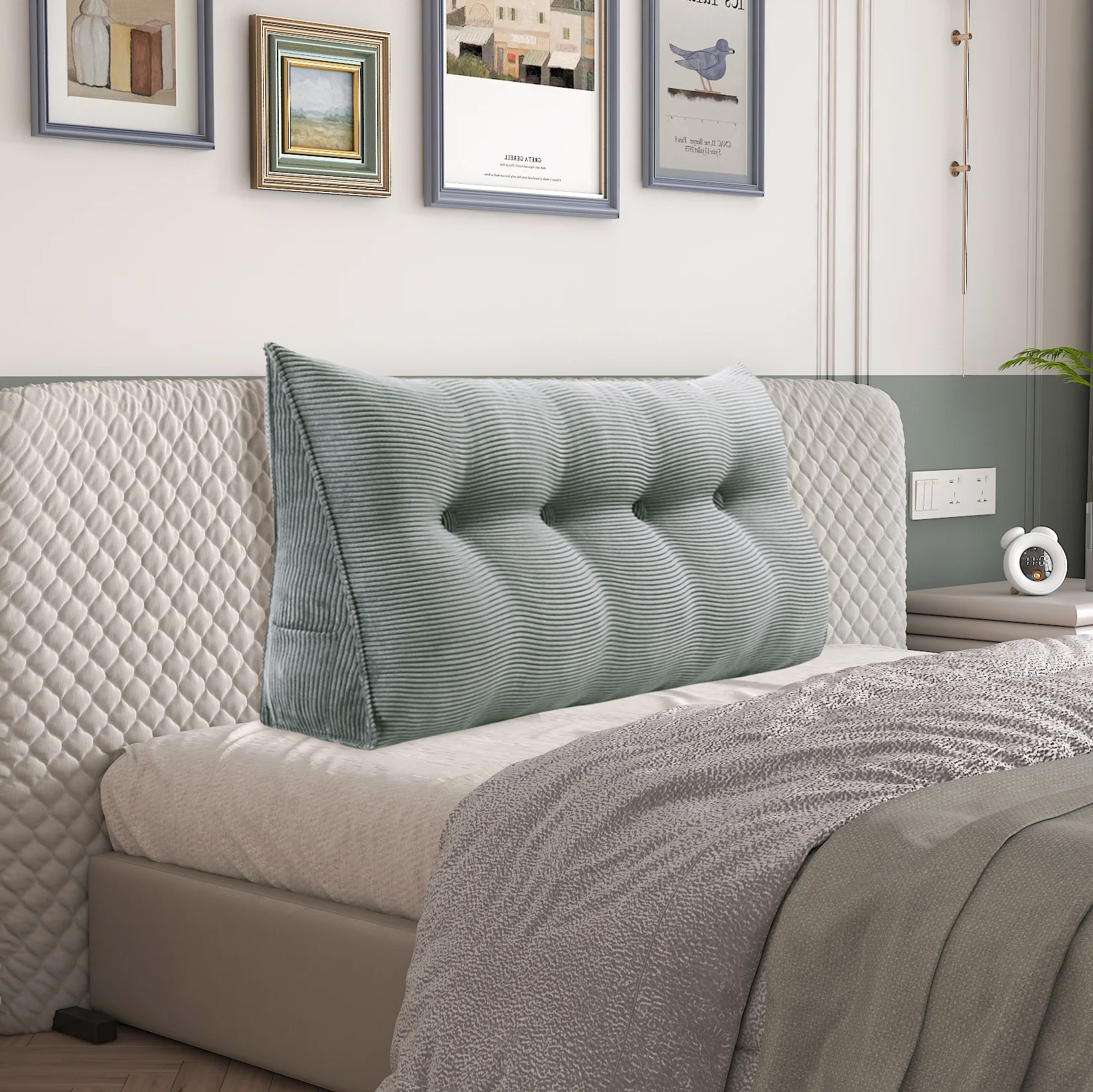 Poduszka oparciowa jest wypełniona pianką poliuretanową o wysokiej gęstości, zapewniającą doskonałe wsparcie pleców. Tkanina poduszki klinowej ma świetny efekt wizualny, idealnie dopasowując się do wystroju Twojego wnętrza.