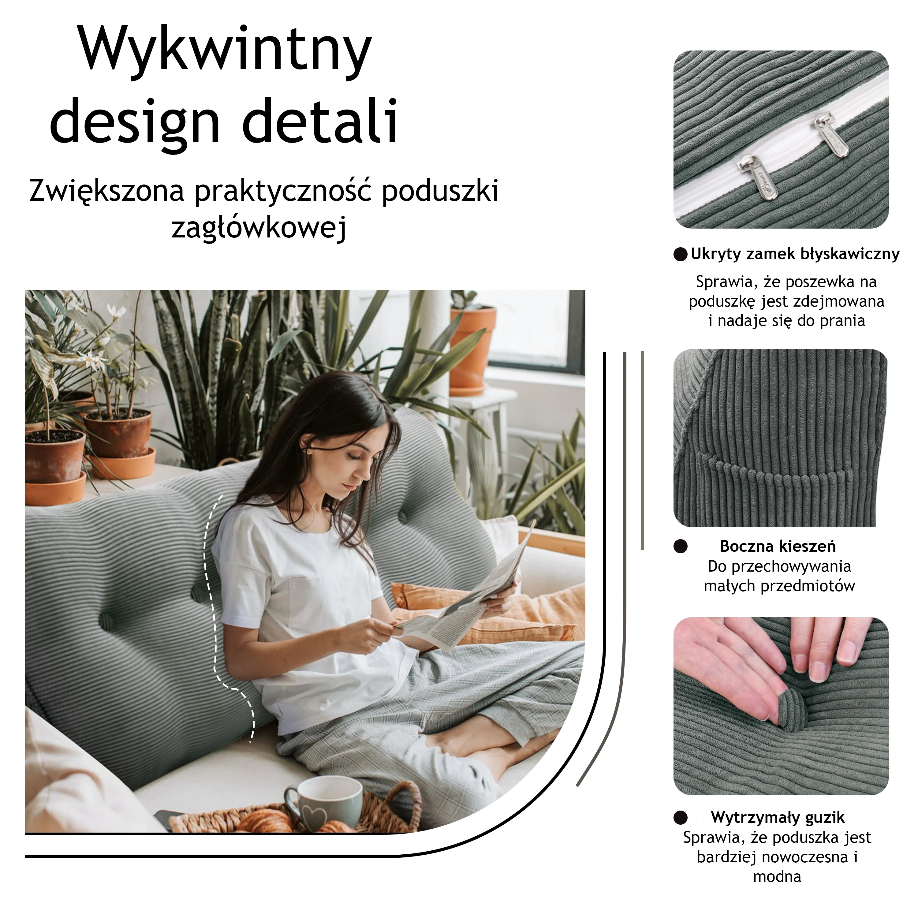 Ta poduszka do czytania zapewnia doskonałe wsparcie pleców i karku, gwarantując maksymalny komfort podczas czytania, relaksu i oglądania telewizji.