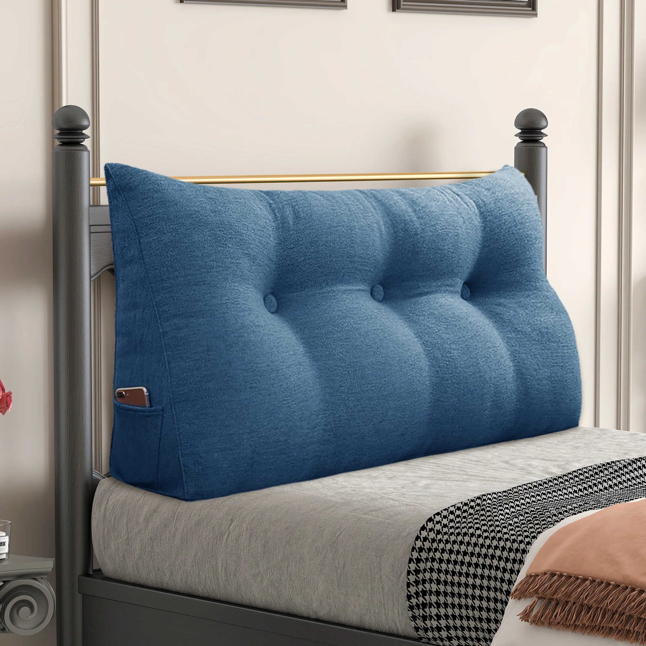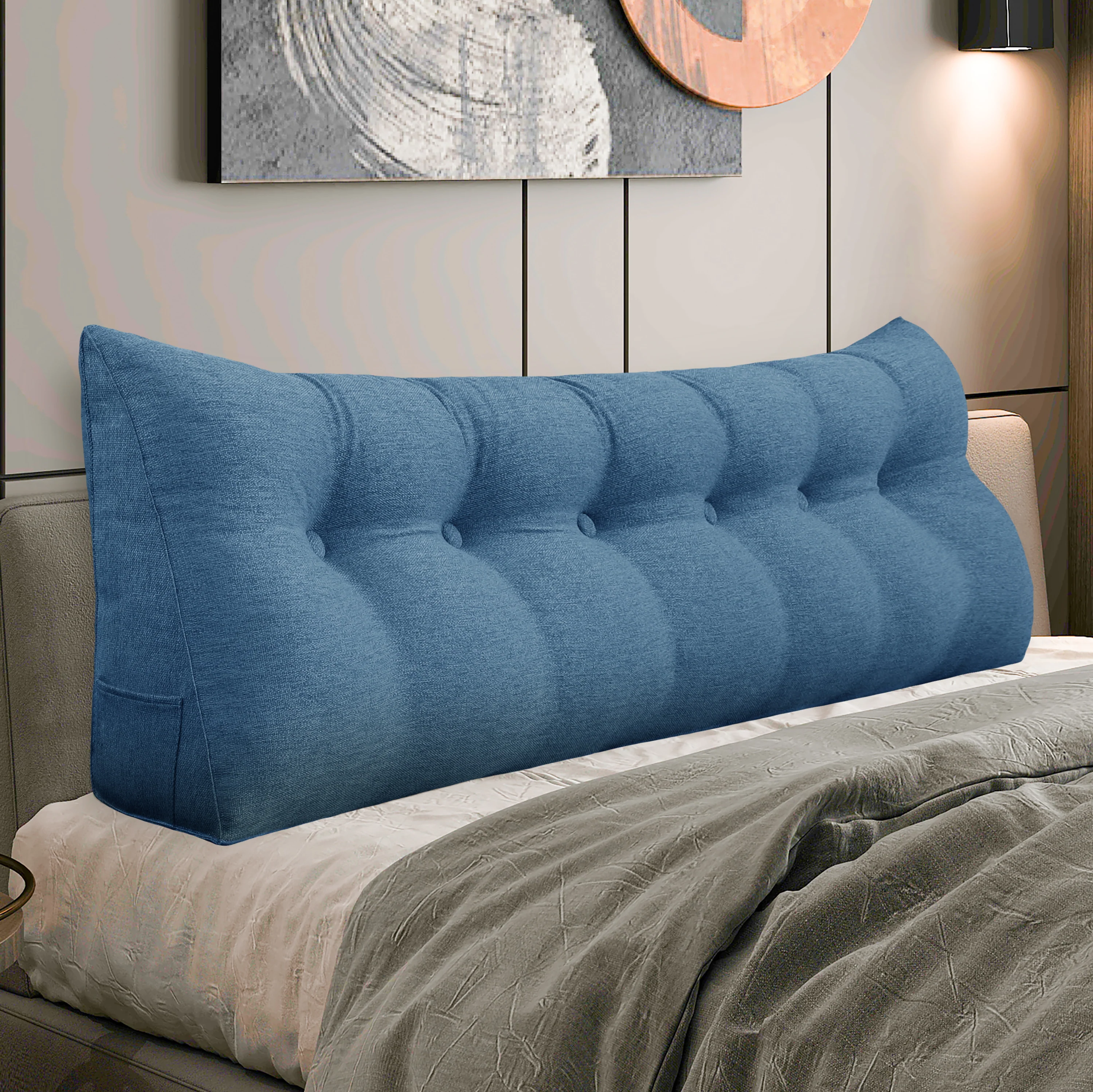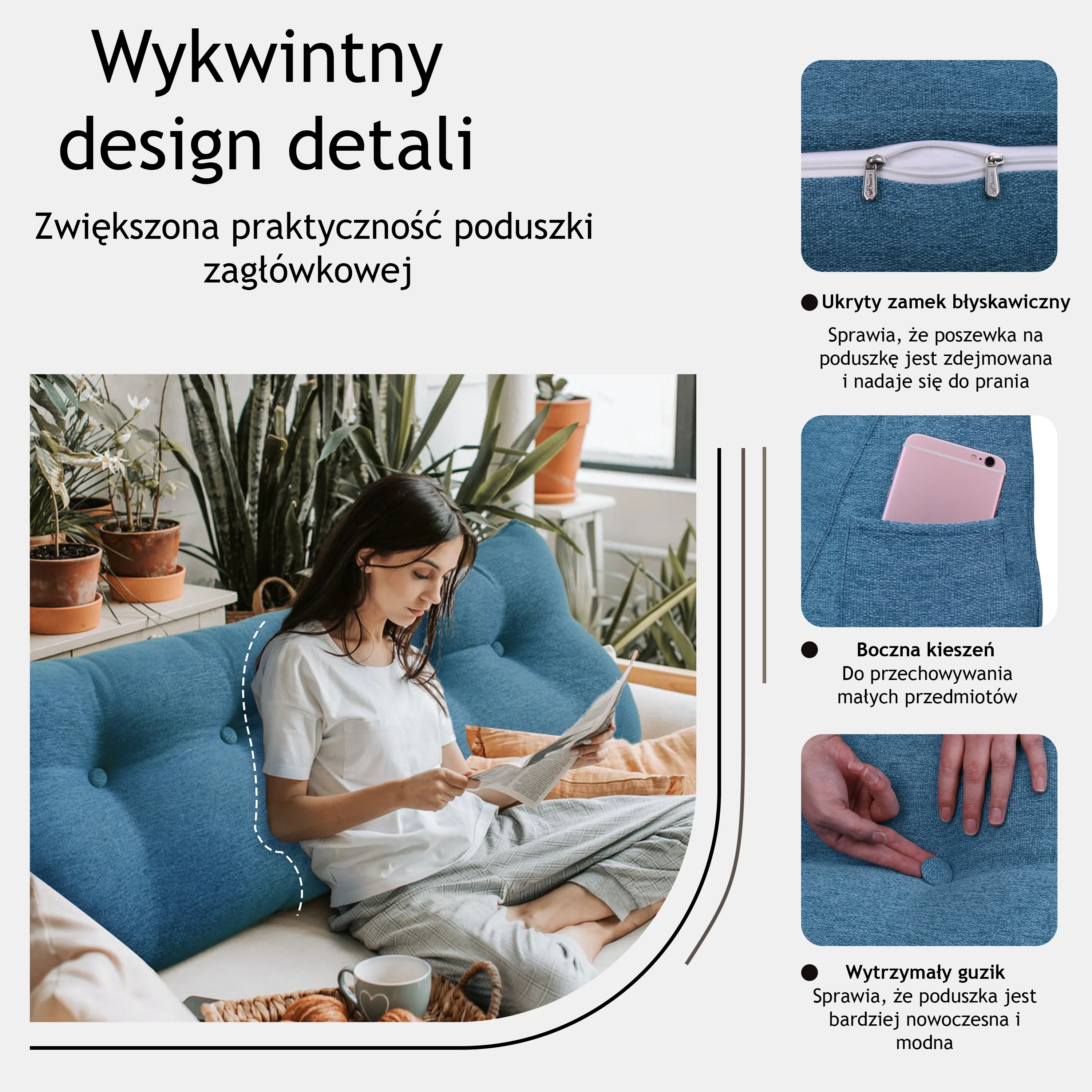 Poduszka oparciowa wypełniona jest pianką poliuretanową o wysokiej gęstości, zapewniającą wyjątkowe wsparcie pleców. Tkanina klinowej poduszki zapewnia świetny efekt wizualny, idealnie dopasowując się do wystroju Twojego wnętrza.