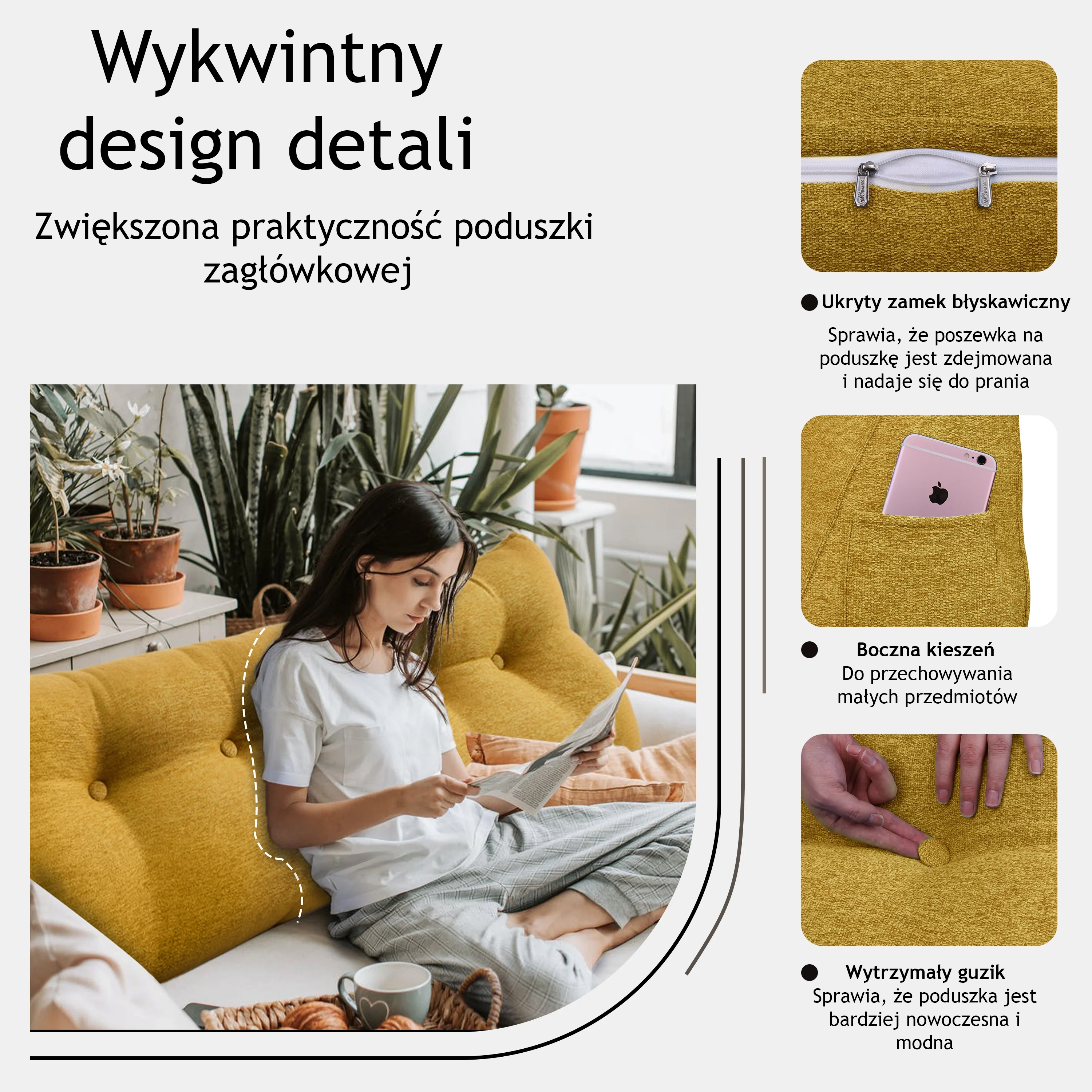 Poduszka oparciowa wypełniona jest pianką poliuretanową o wysokiej gęstości, zapewniającą wyjątkowe wsparcie pleców. Tkanina klinowej poduszki zapewnia świetny efekt wizualny, idealnie dopasowując się do wystroju Twojego wnętrza.