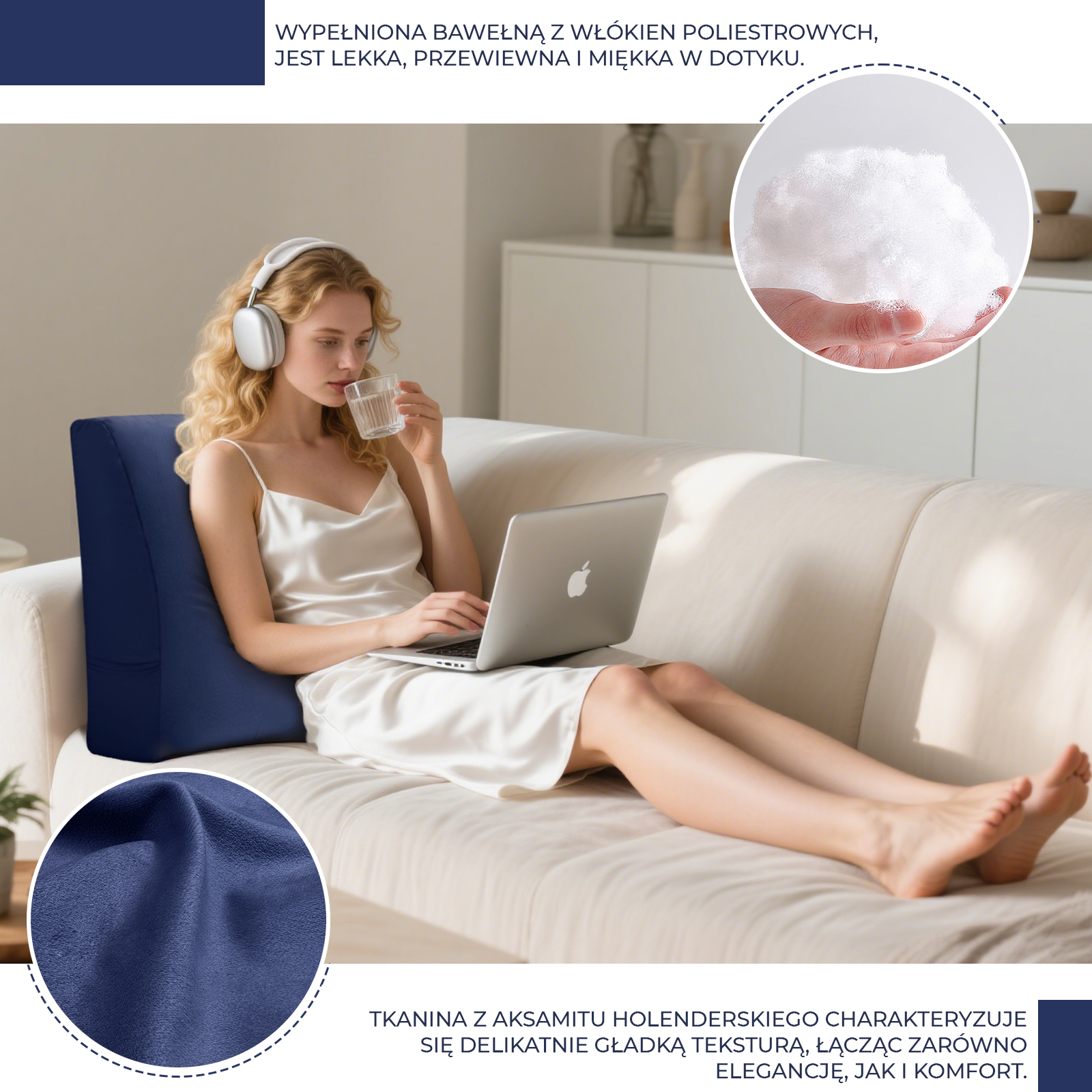 Poduszka lędźwiowa do siedzenia w łóżku (np. podczas czytania lub pracy z laptopem).